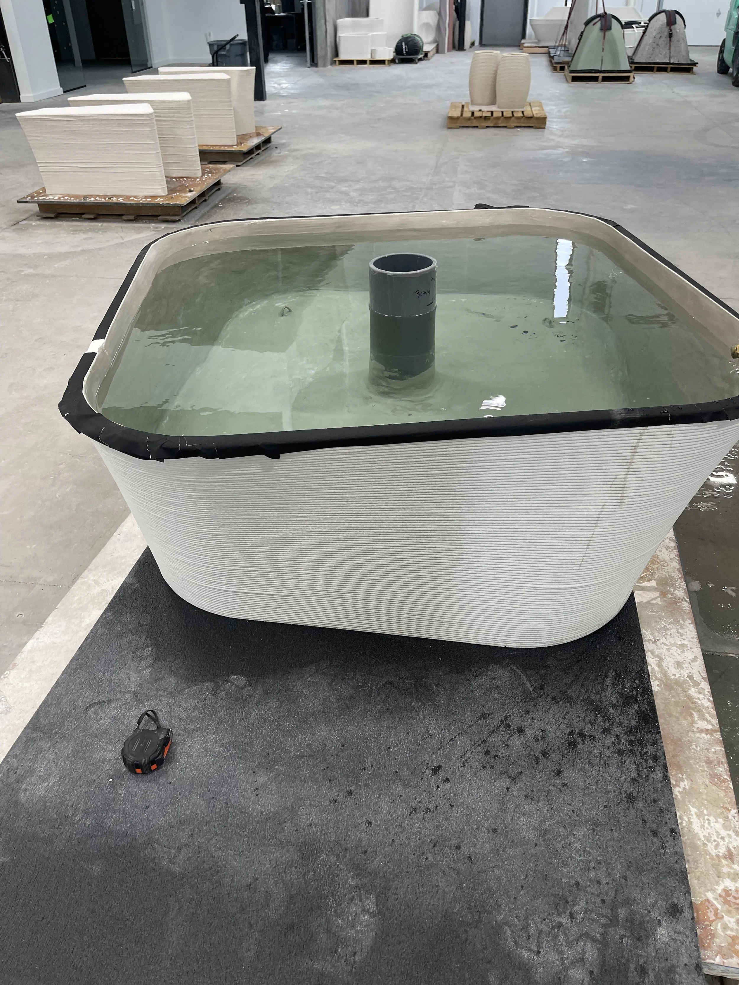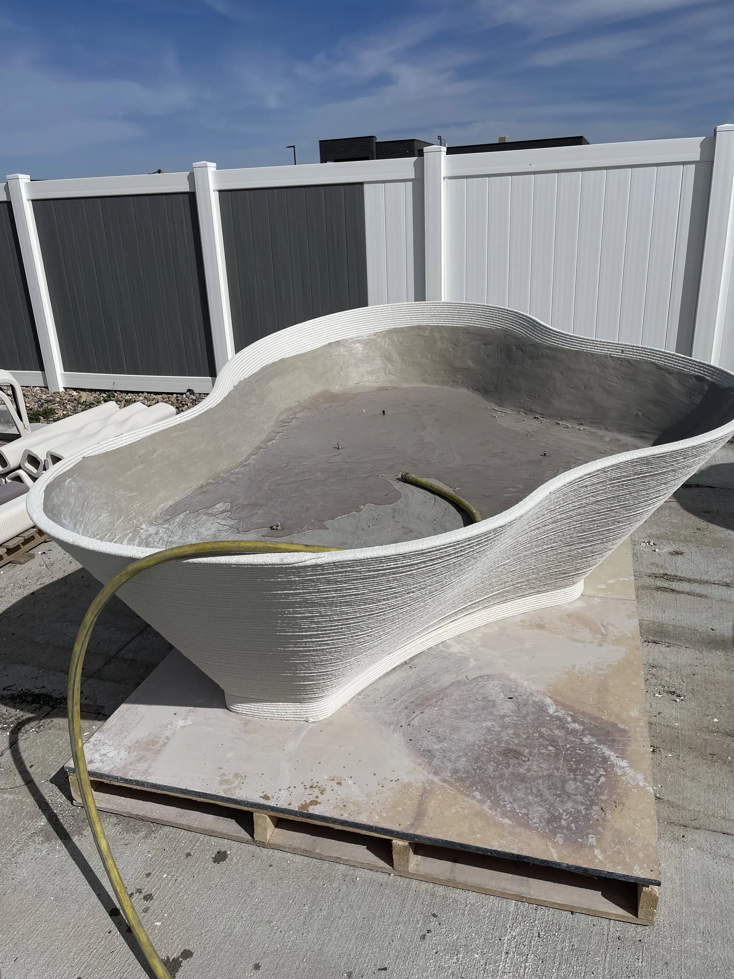 Testing fails occur when the print cracks under the weight from the water or leaks are found within the structure. This usually occurs within the first three days after being filled. When a product fails the test, it is then re-printed with some elements redesigned or reinforced before it is retested.